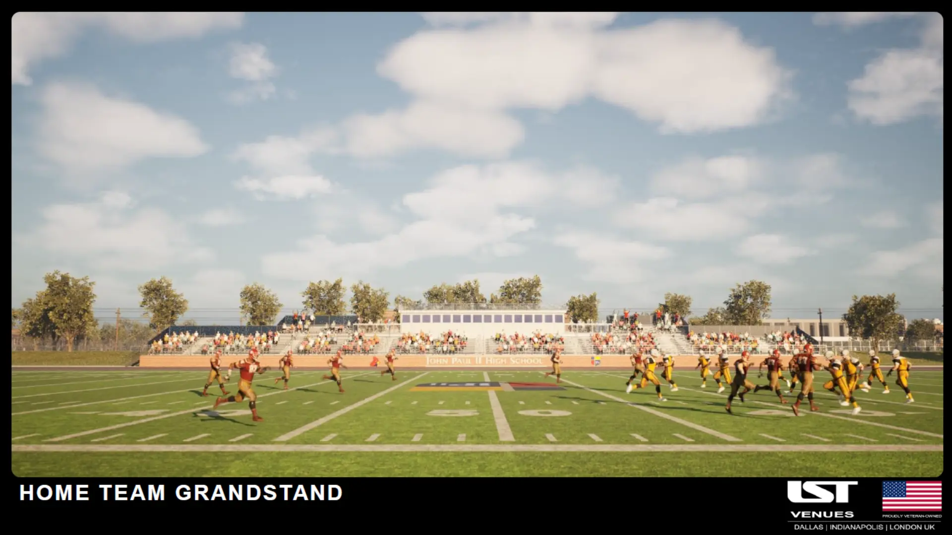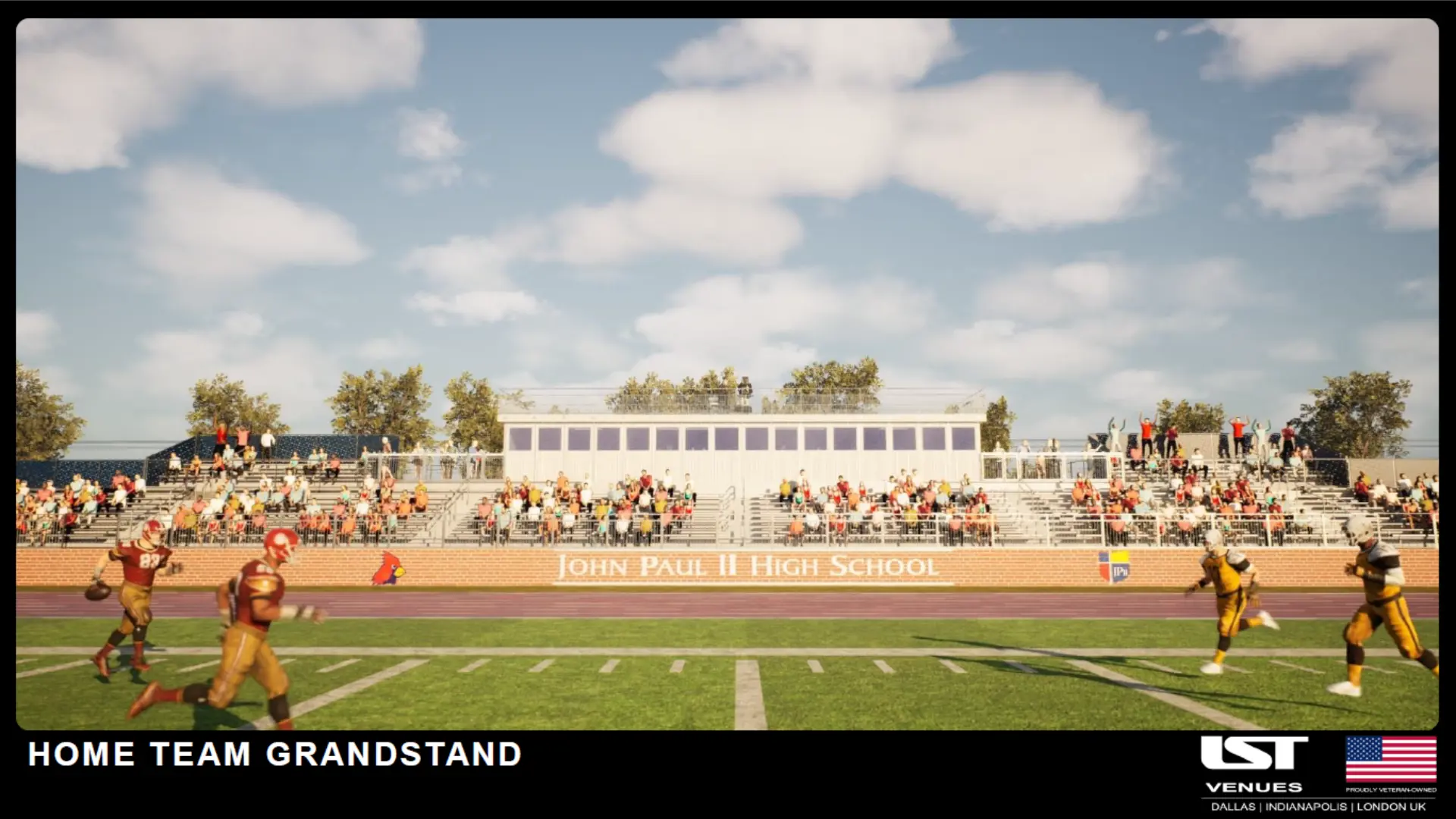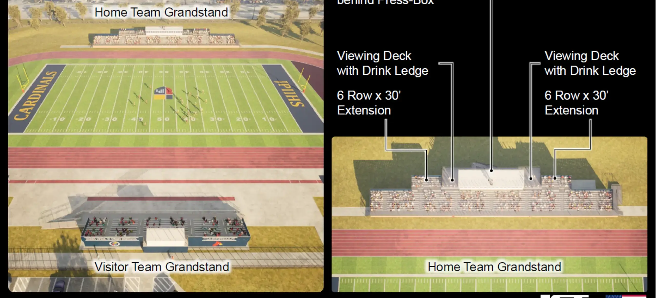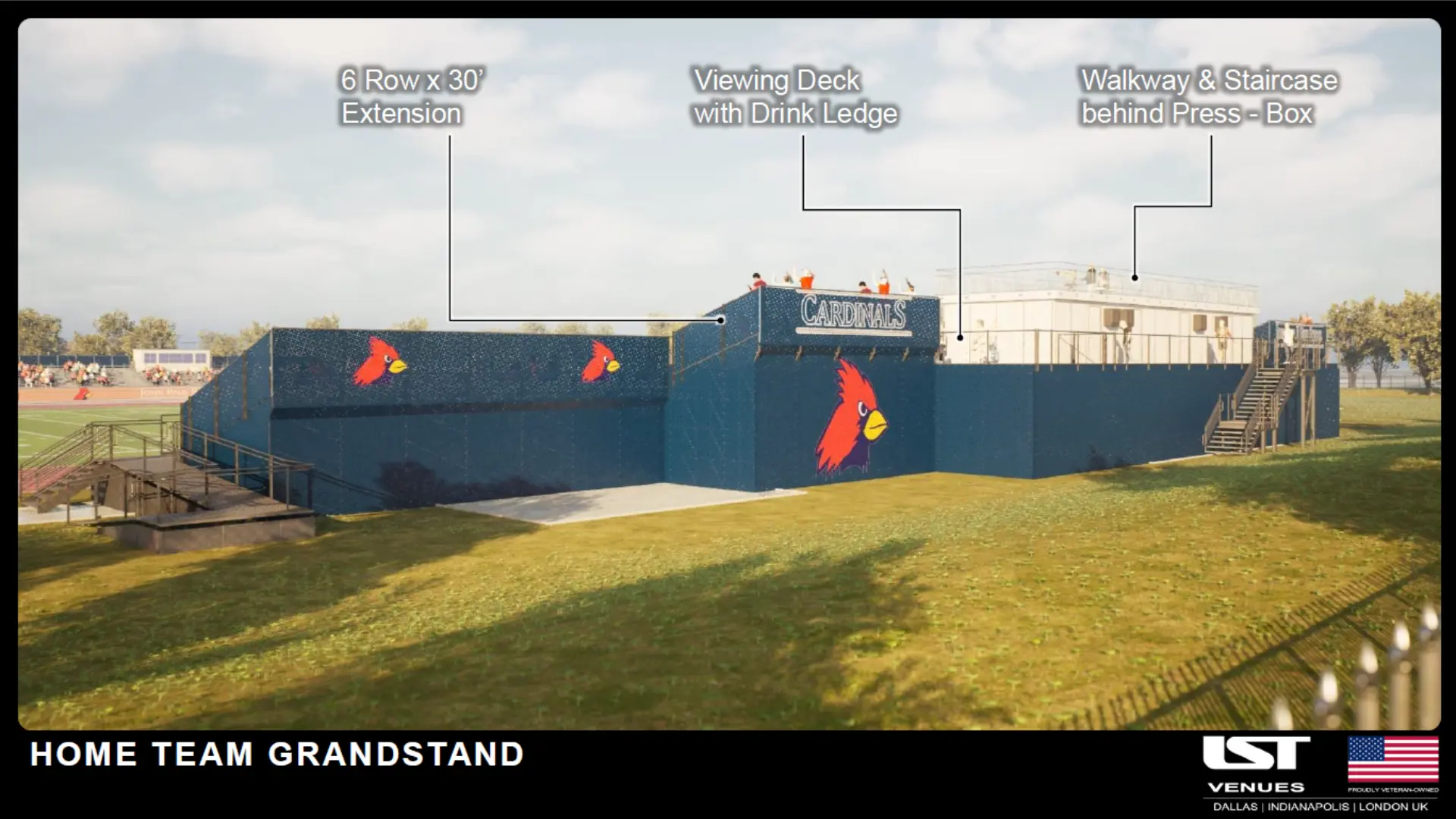 - Improved Seating and Fan Experience: The project adds expanded seating on both sides of the main grandstand, allowing the Cardinal Belles and marching band to join the student section. The structure will feature viewing decks on either side of the press box and be wrapped with JPII branding.