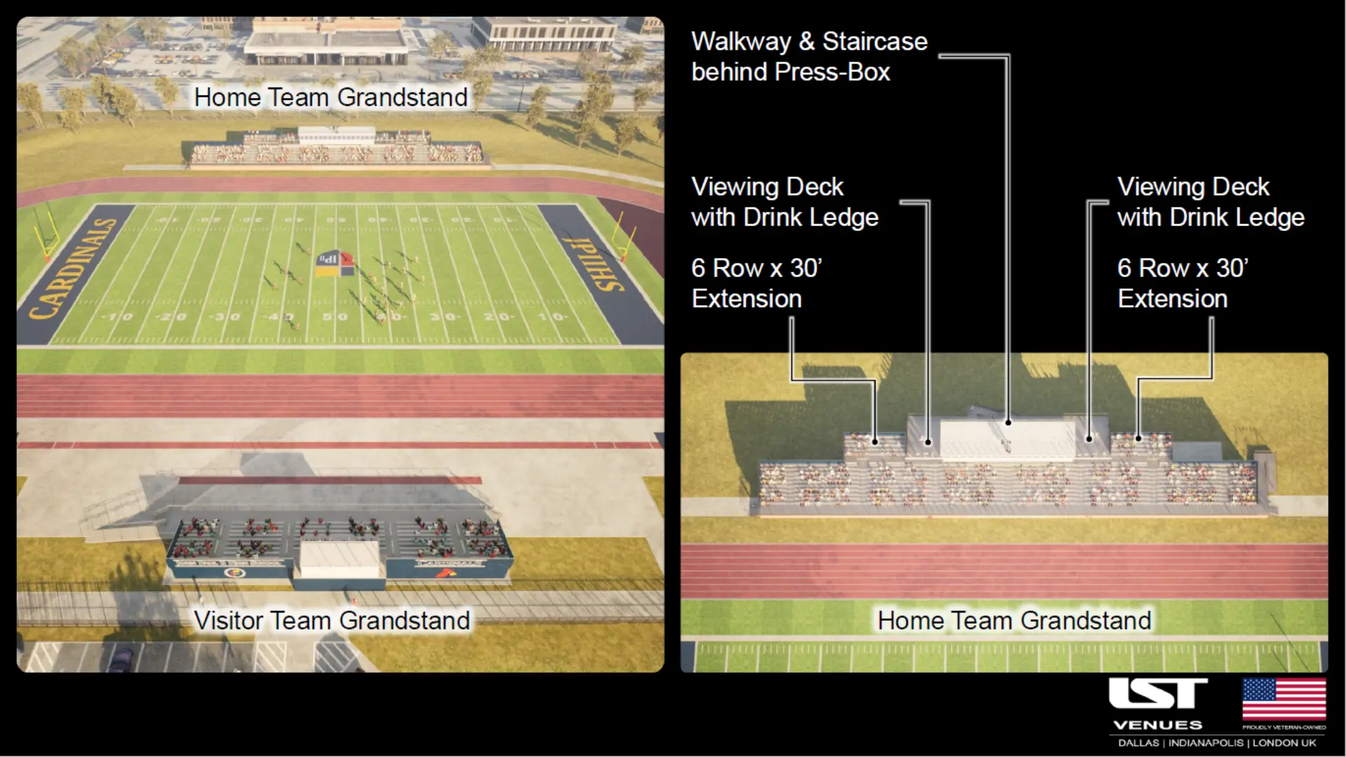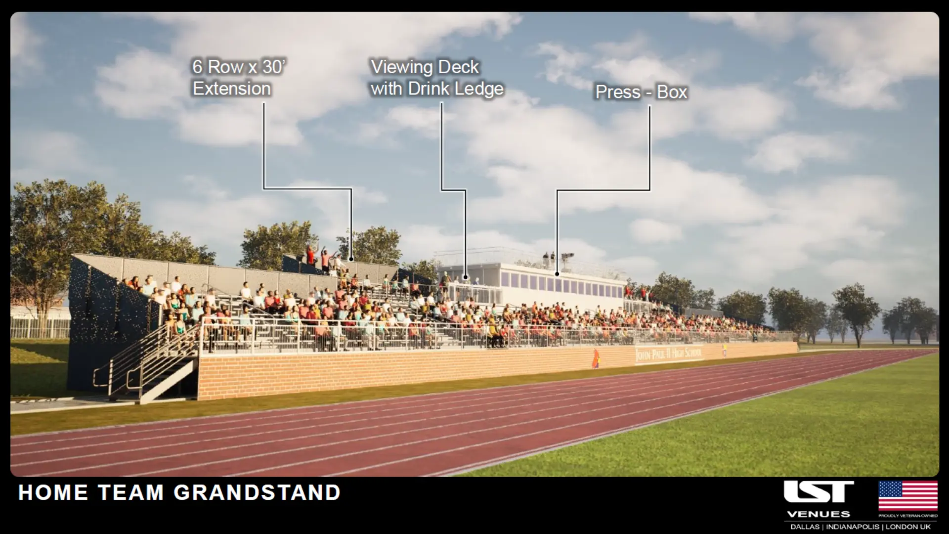 Both the new competition field and the grandstand/press box expansion are slated to begin in early 2026 and are scheduled to be ready for the start of the 2026-2027 school year.