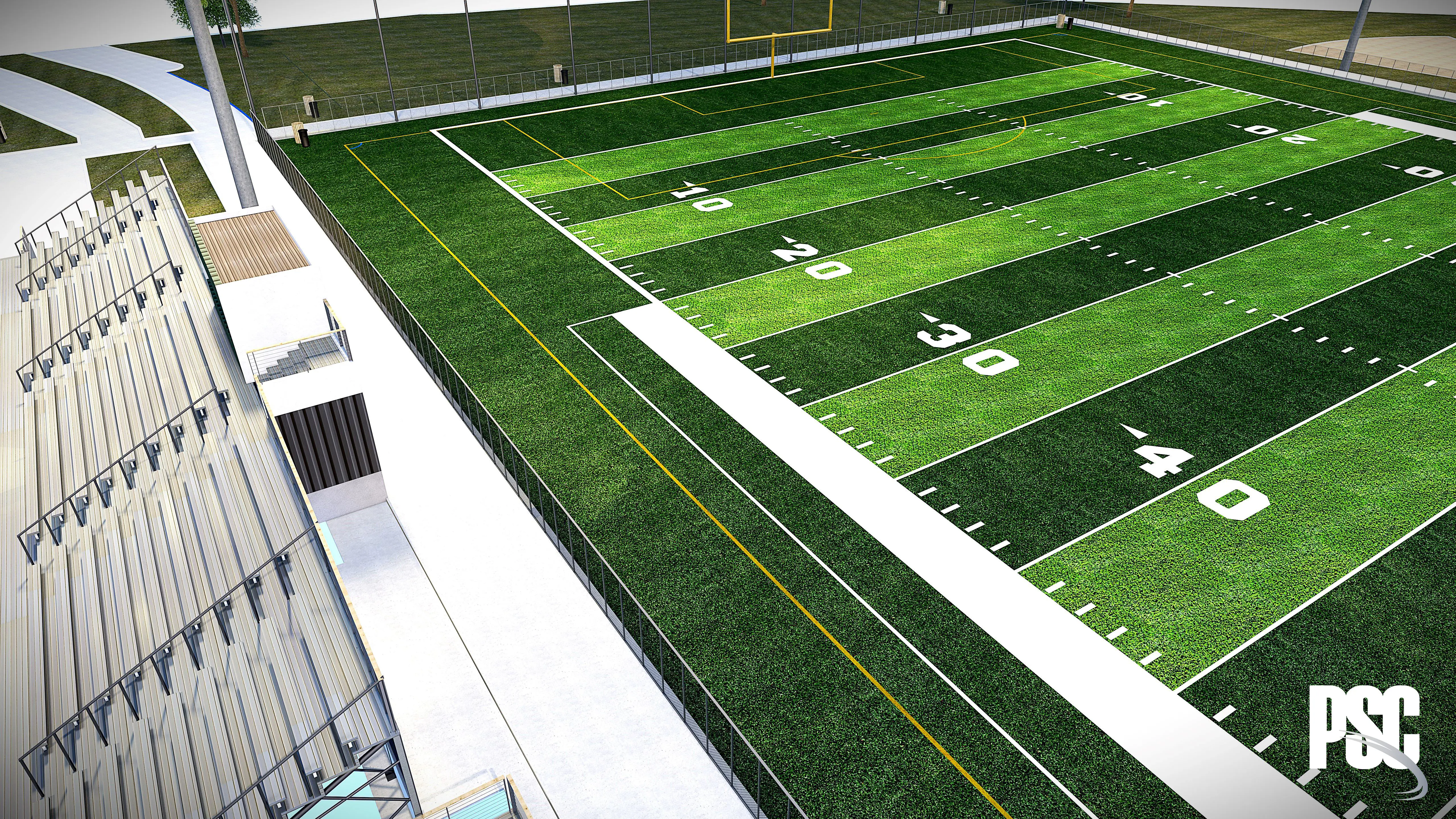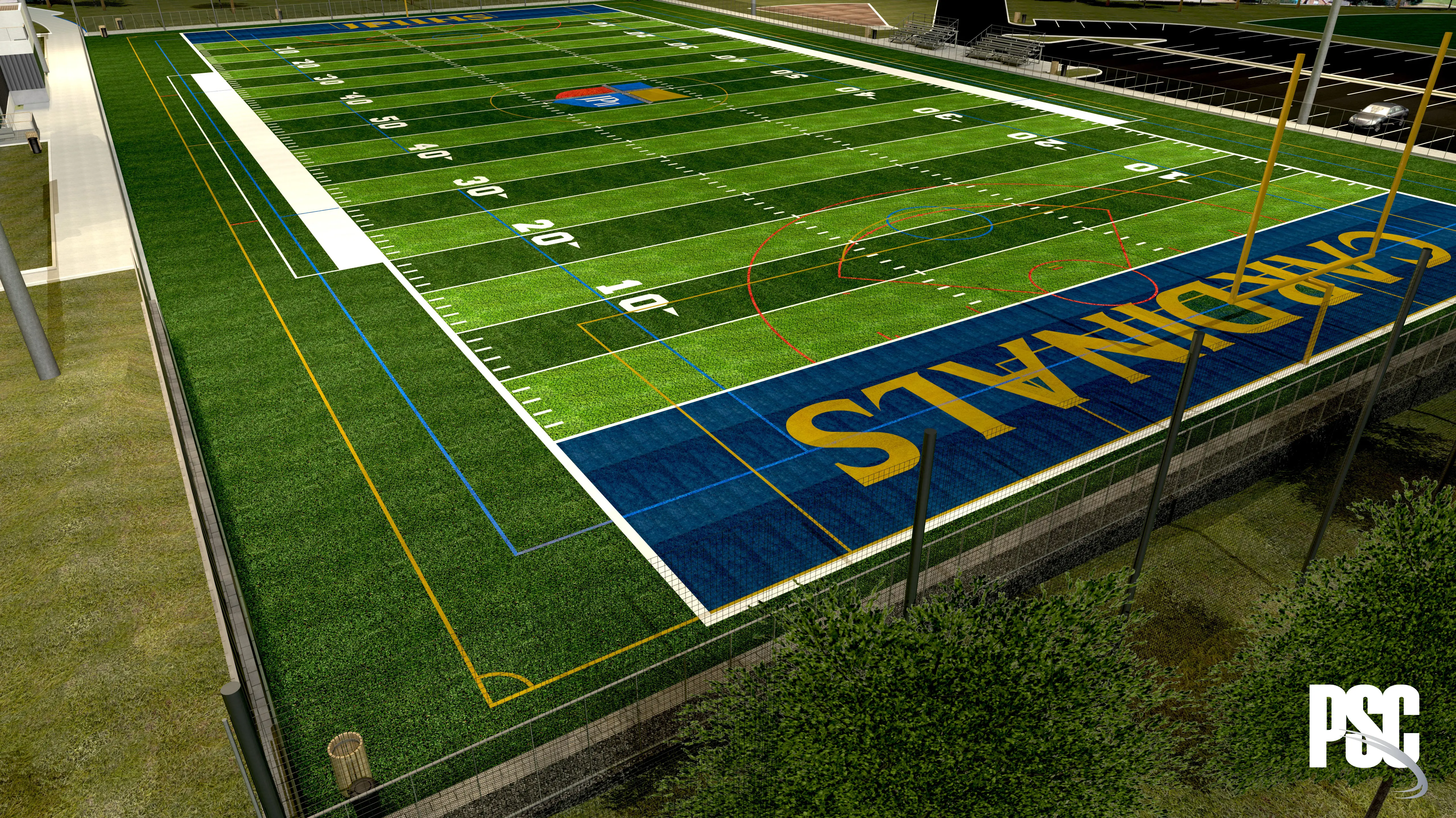 - New Full-Size Turf Competition Field: This new, multi-purpose turf field will be lined for soccer, football, and lacrosse, providing a dedicated space for competition and training. The design will include a mobile band tower for use by the marching band and for any necessary filming.